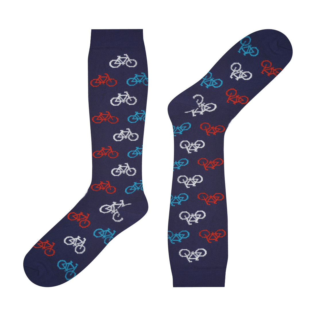 Si eres de esos que le encantaría vivir montado en su bicicleta este diseño de medias es para ti. Con bicicletas en blanco sobre un azul profundo, lleva tu hobby cualquier día y a cualquier hora.