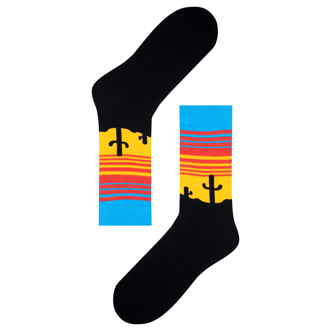 Un mágico atardecer en el desierto, justo antes de que caiga la noche, el cielo azul y los tonos de rojo y amarillo comienzan a mostrar lo que traerá la noche. Lleva en tus pies la tranquilidad de esta escena y que nada te perturbe.