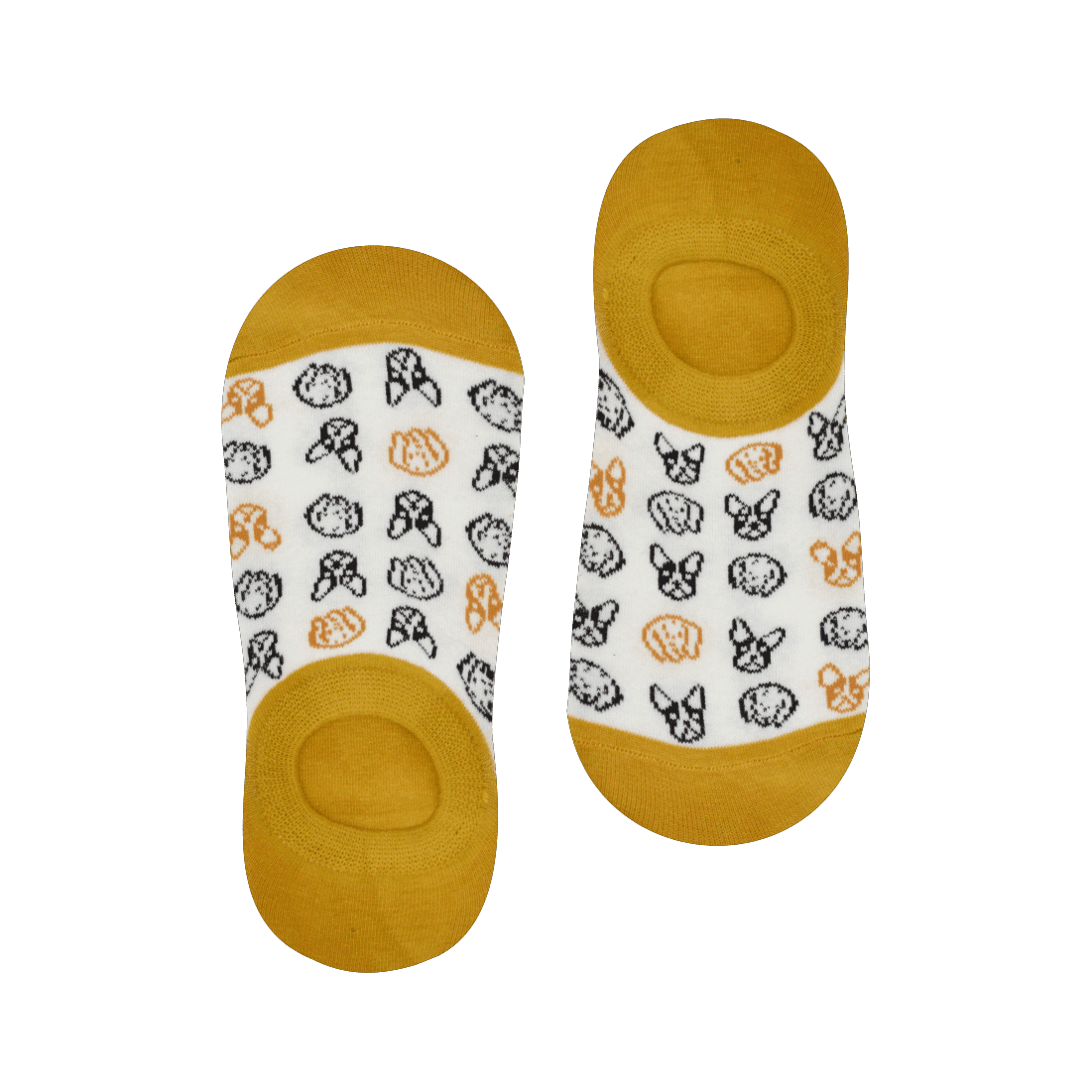 Un diseño en fondo blanco con talón y resorte en dorado y lleno de caritas de perritos de las mas variadas razas. Un diseño ideal para amantes de los canes.